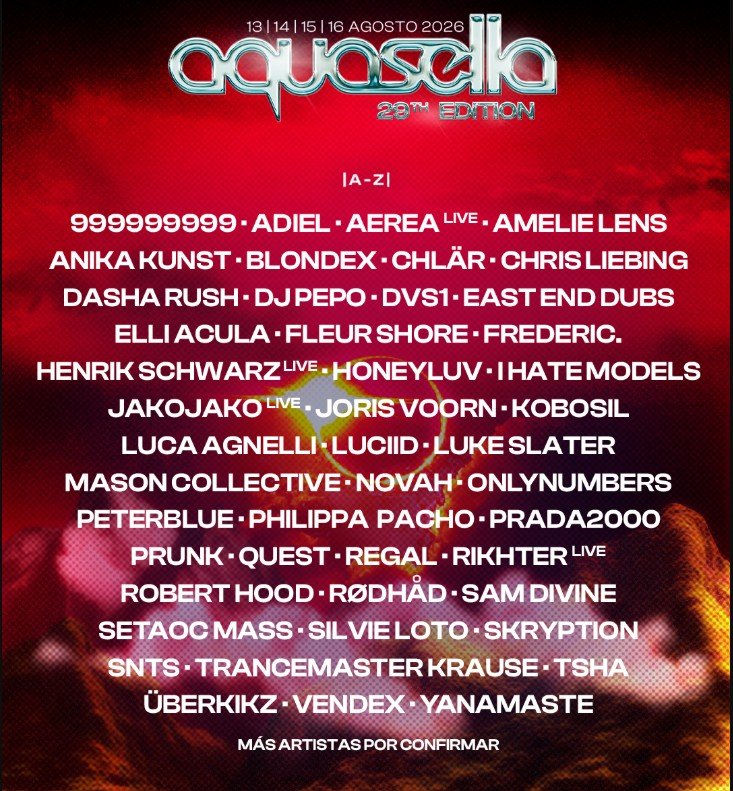 Aquasella vuelve a anunciar nuevos nombres que se incorporan al cartel. La nº 29 edición del festival en agosto 2026 va completando los huecos de su propuesta final, con nuevos protagonistas en el Prau para el mes de agosto. El festival más esperado en la escena techno del verano, tendrá lugar los días 13, 14, 15 y 16 de agosto en Arriondas y ha añadido seis nuevas actuaciones los últimos días.